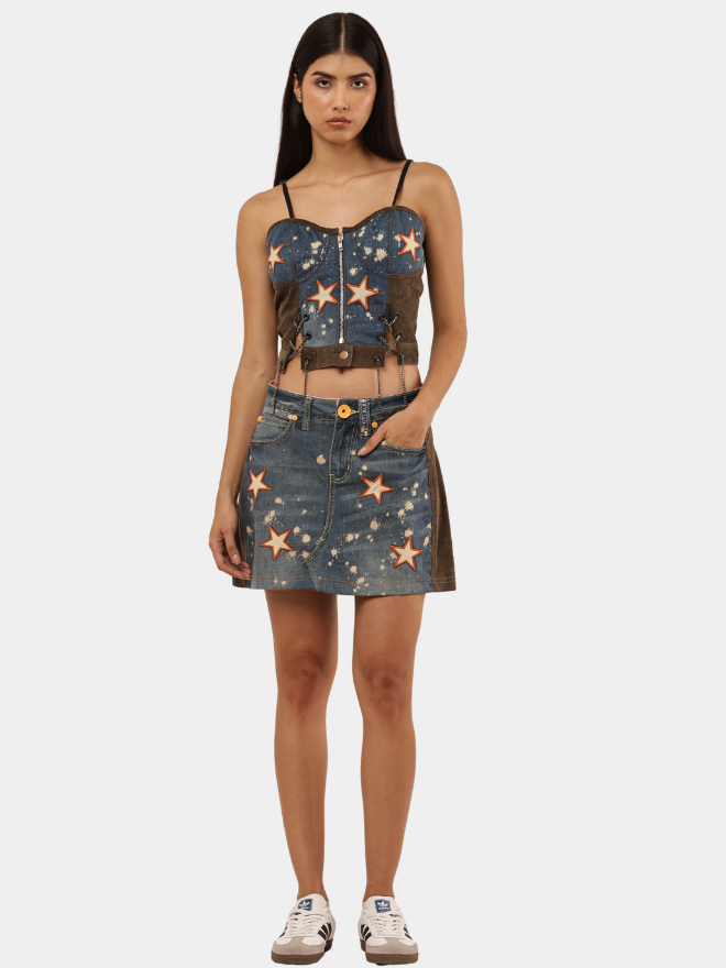 Our team gets to work — sourcing vintage base pieces, cutting, designing, and reworking it into a fully wearable article.