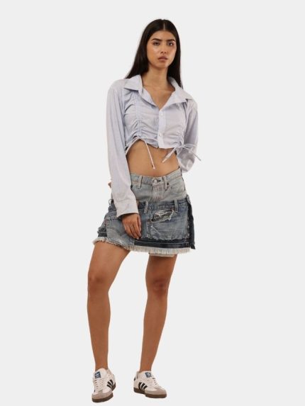 Upcycled Levi’s Patchwork Denim Skirt | Distressed Double Jean Design | Size 28–34
