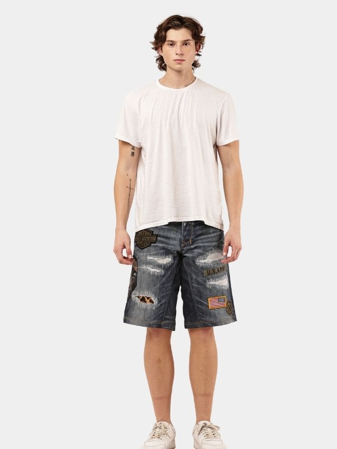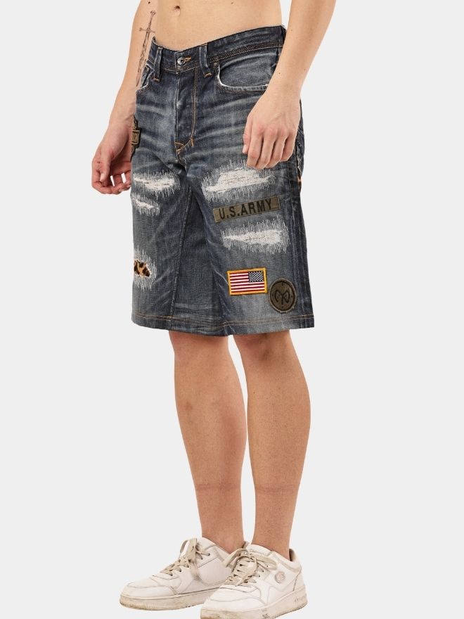 1of1 PATCH AND DISTRESSED REWORKED DENIM JORTS