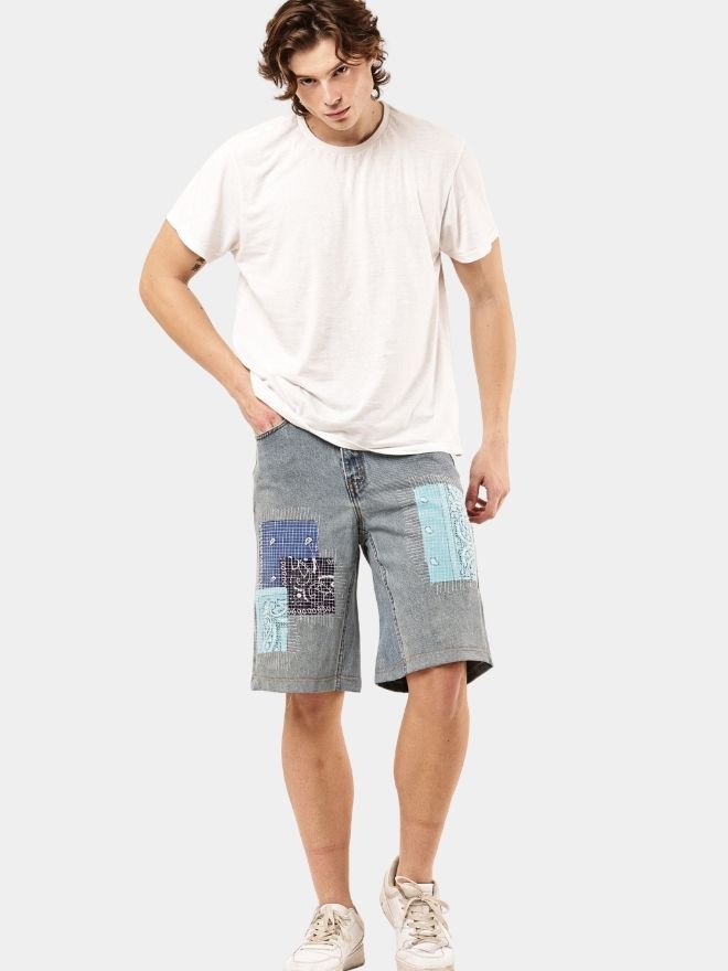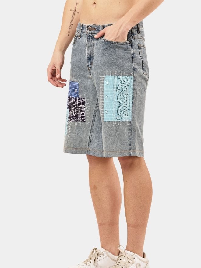 These 1 of 1 Reworked Bandana Patch Denim Jorts are built for those who don’t follow trends — they create them. Crafted from authentic vintage denim and reconstructed with bold bandana patch panels, this piece blends rugged workwear roots with modern streetwear energy.