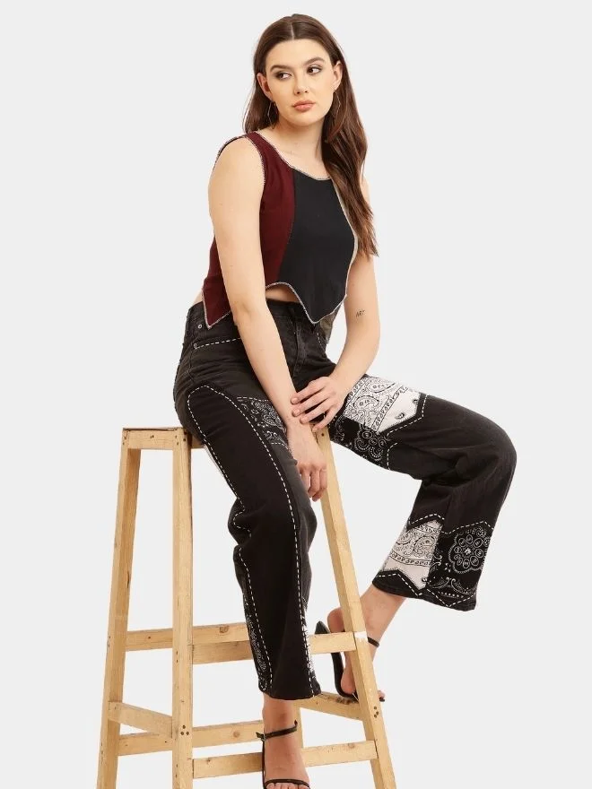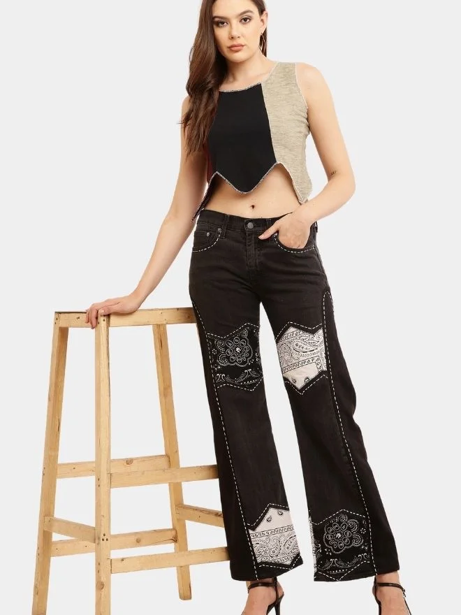 • Includes: 1 Bandana Panel Jeans + 1 Sleeveless Knit Panel Top
