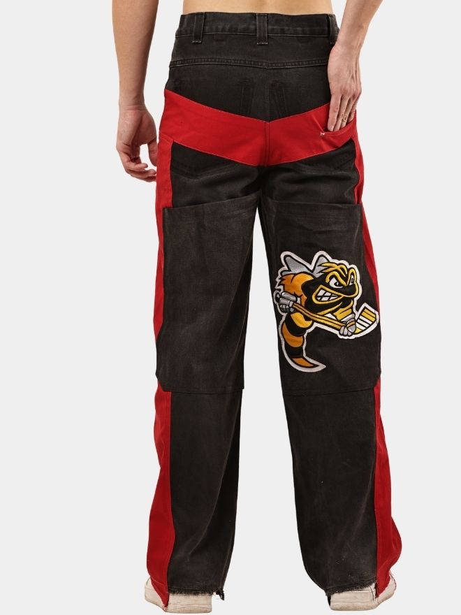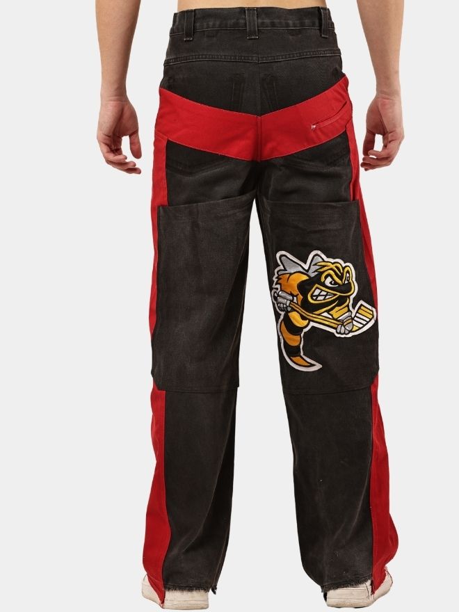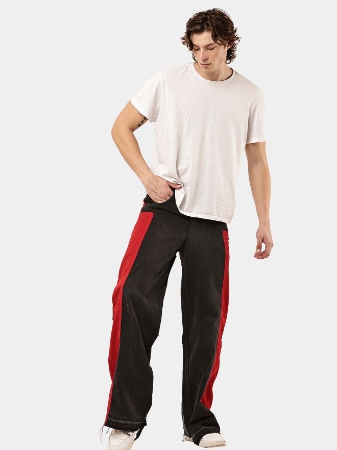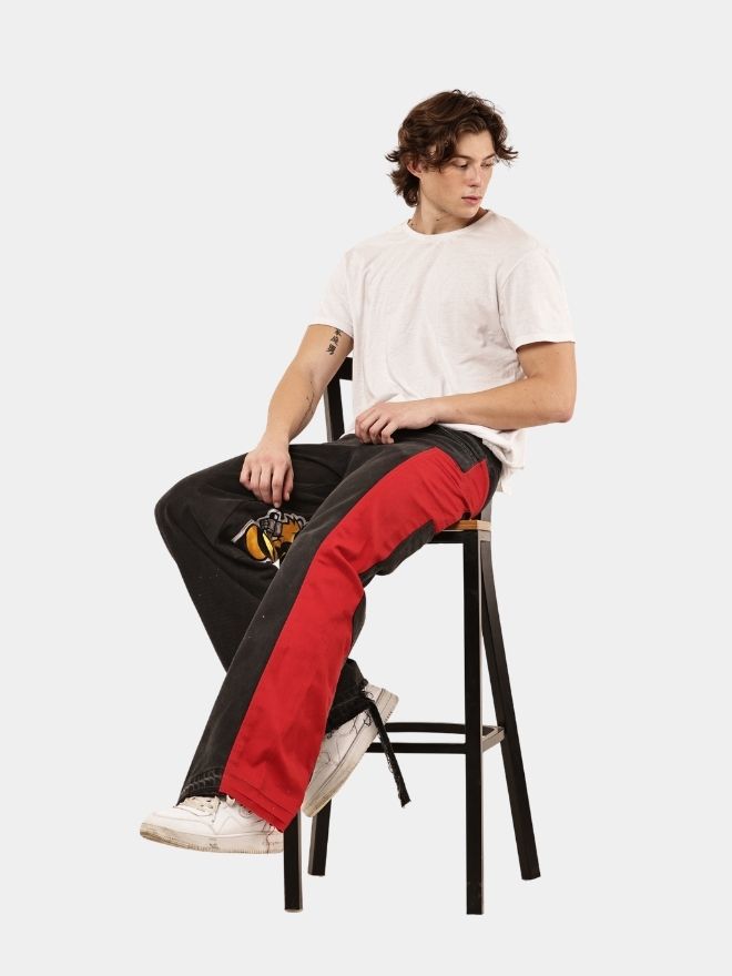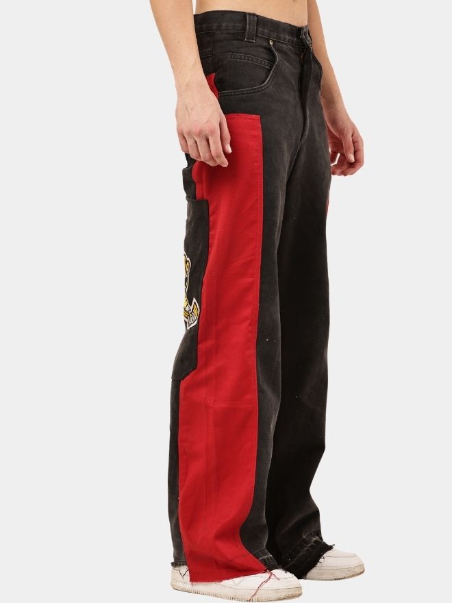 Inspired by skate culture and early 2000s streetwear, the baggy silhouette allows full mobility while maintaining a strong oversized aesthetic. The rugged construction, visible patch technique, and raw detailing give each pair authentic vintage character.