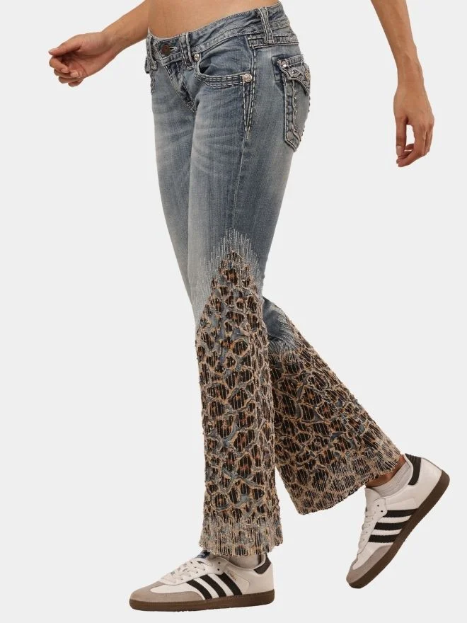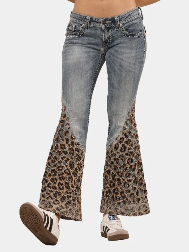 Denim Leopard Flare Jeans