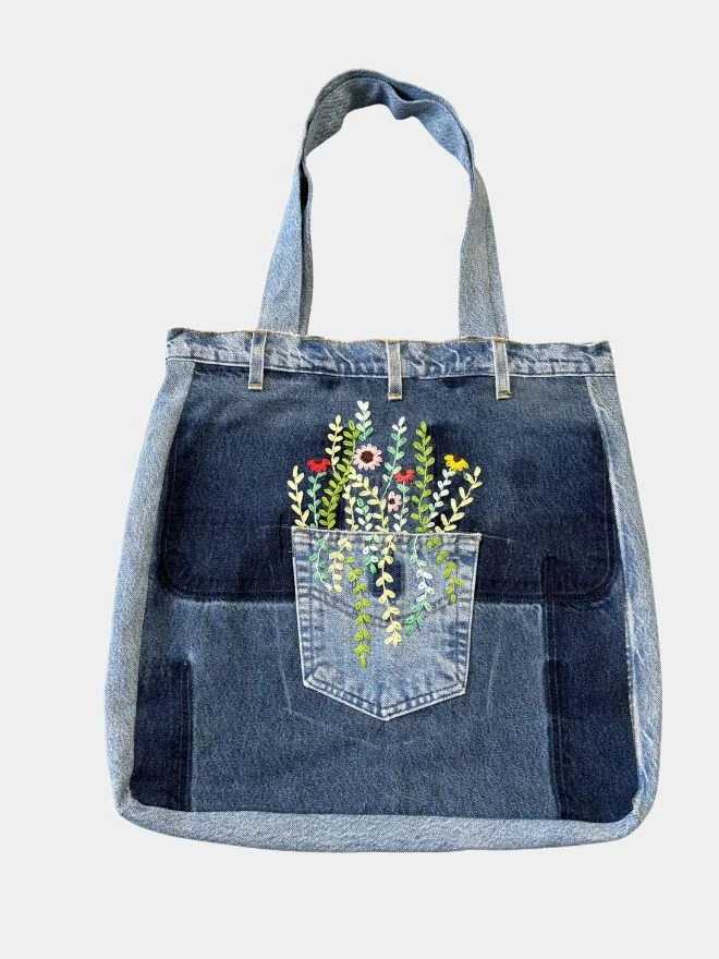 Eco-Stitch Floral Hand-Embroidered Denim Bag
