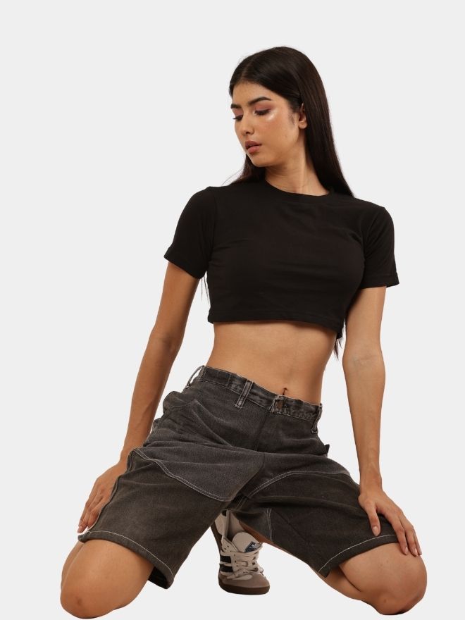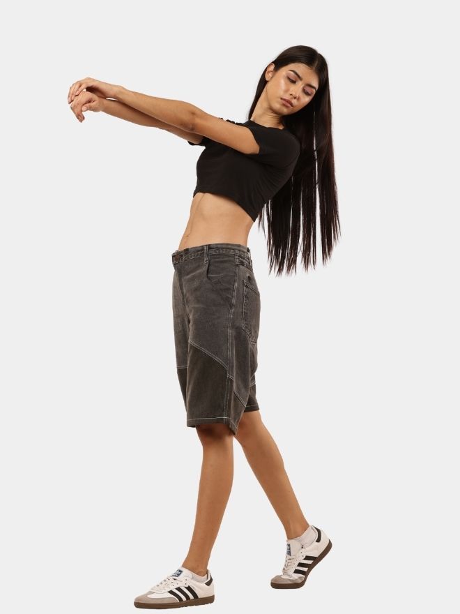 Heritage Reworked: Vintage Denim Jort with Tonal Black Panel