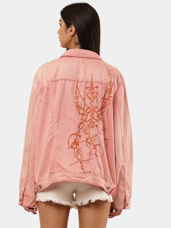 The oversized, relaxed silhouette keeps the look effortless and versatile — perfect for layering over tees, dresses, or hoodies. Whether you style it street, vintage, or high-fashion, this jacket stands out with confidence and originality.