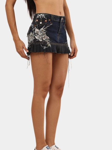 One of the standout features is the front pocket, which is accented with layered waste denim pieces covered with mesh fabric. This design not only adds texture and depth but also highlights the beauty of reclaimed materials, turning leftover fabric into an artistic element.