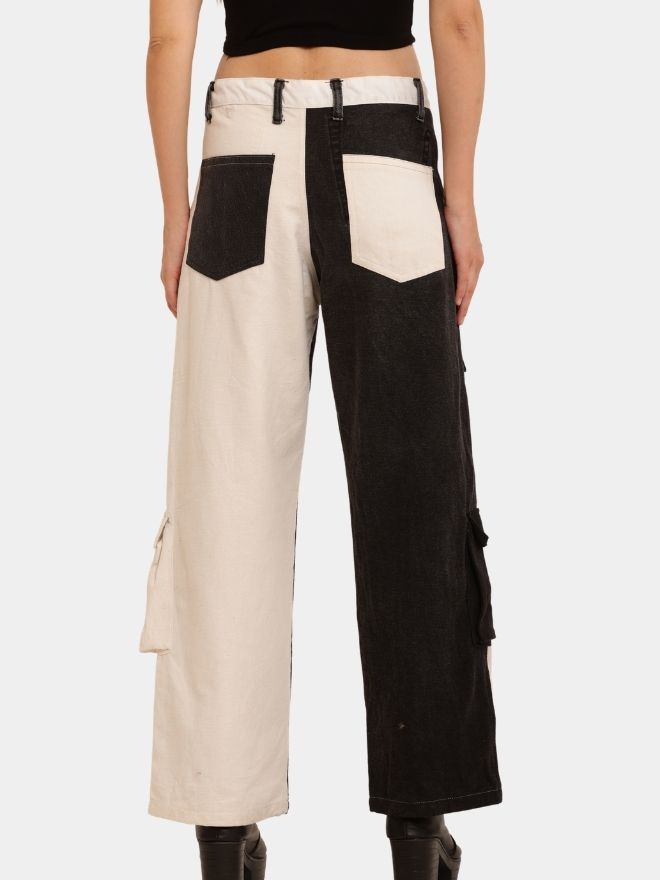 Make a confident statement with our Contrast Panel Denim Pants, thoughtfully crafted from mixed contrasting denim fabrics to create a striking visual impact. The combination of different washes adds depth, texture, and a contemporary edge to the classic straight-leg silhouette.