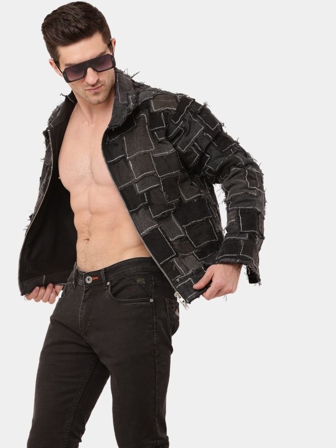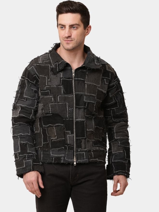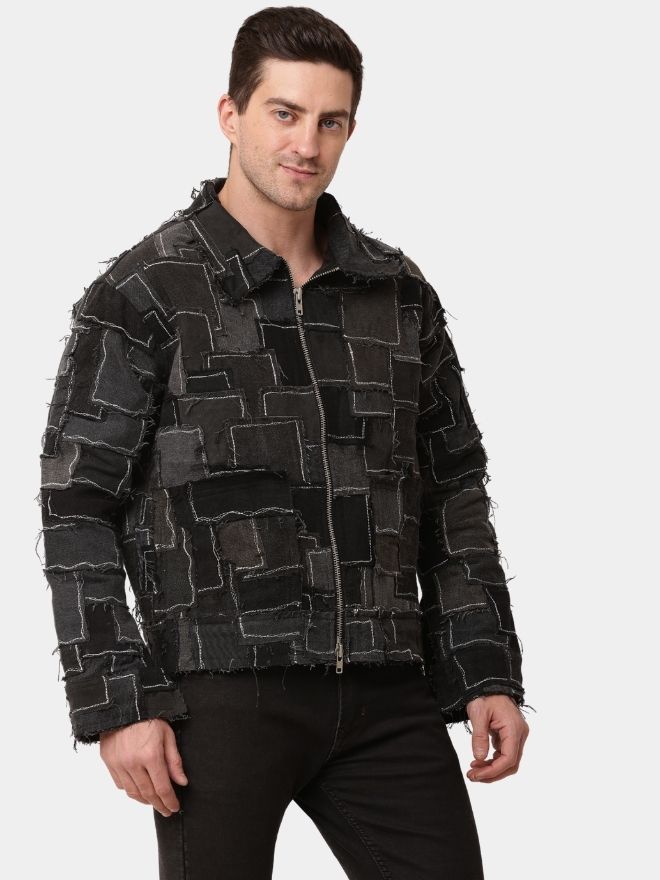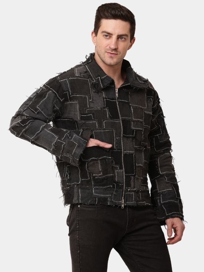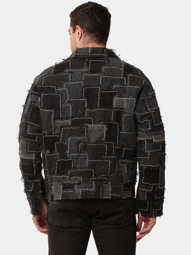 Designed in a sleek black tonal palette, the jacket delivers a cohesive and contemporary aesthetic. The layered patchwork texture adds depth and dimension while maintaining a clean, monochrome finish. Each panel reflects the transformation of discarded materials into a high-fashion, wearable statement.