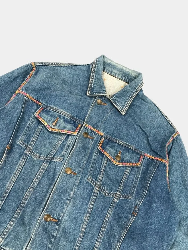 The Reborn Embroidery Jacket represents the true spirit of reworked fashion—transforming vintage denim into something fresh, artistic, and meaningful. Crafted from reclaimed denim, this piece highlights the beauty of hand craftsmanship and thoughtful design.