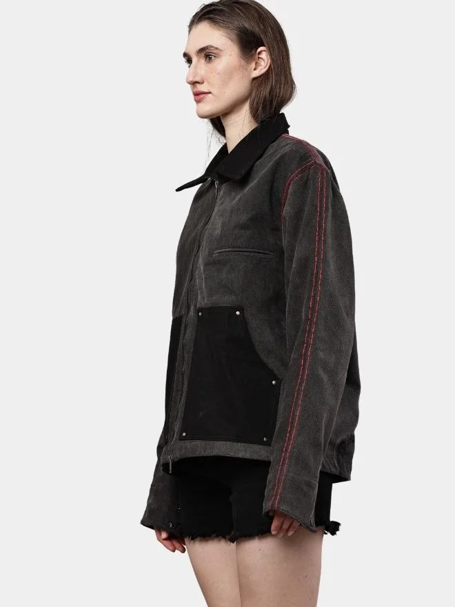 This jacket is ideal for those who appreciate reworked garments, workwear aesthetics, and statement streetwear pieces.
