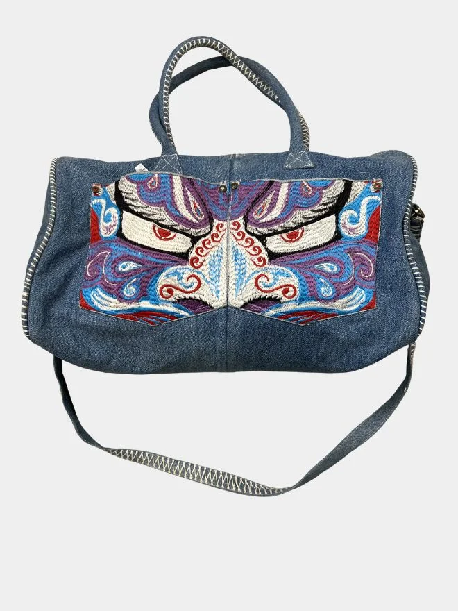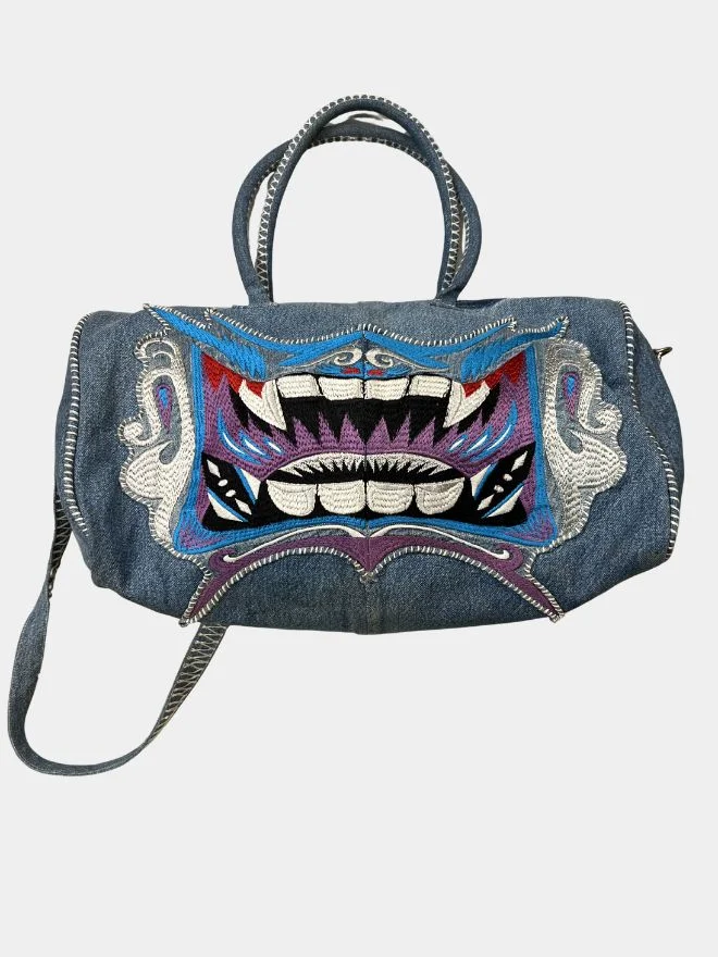 Reworked Denim Monster Duffle Bag – Handcrafted Graphic Piece (One-of-One)