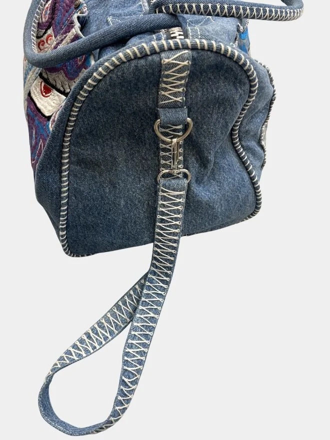 This piece is part of our rework series, crafted from vintage denim and transformed into a bold, statement duffle bag.