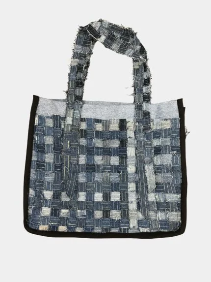 This handcrafted shoulder bag is made from a mix of vintage denim and durable canvas fabrics, inspired by classic workwear aesthetics. The front features a detailed patchwork layout combining different textures, tones, and wear patterns — creating a bold, raw look.