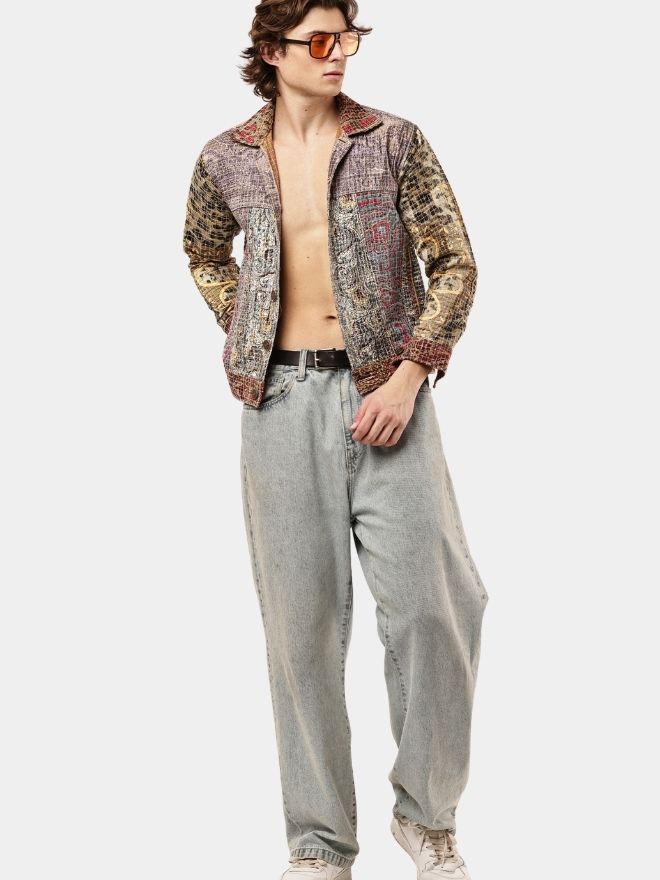 Reworked Embroidered Patchwork Jacket – Artisan Panel Design (S–L)