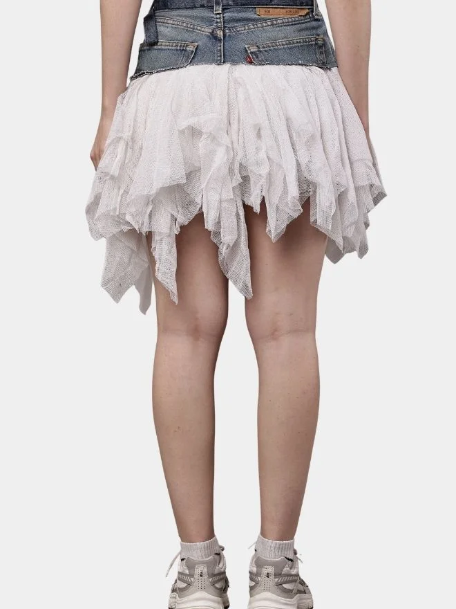 Reworked Levi’s Denim & Mesh Layered Skirt