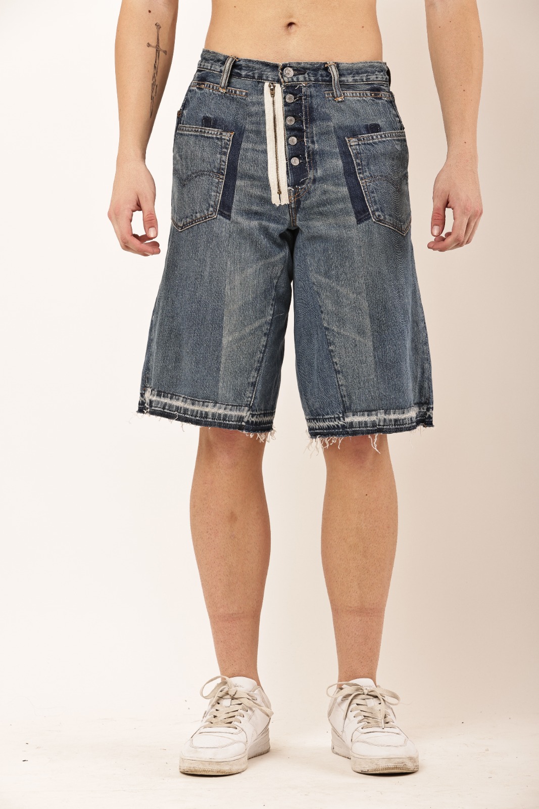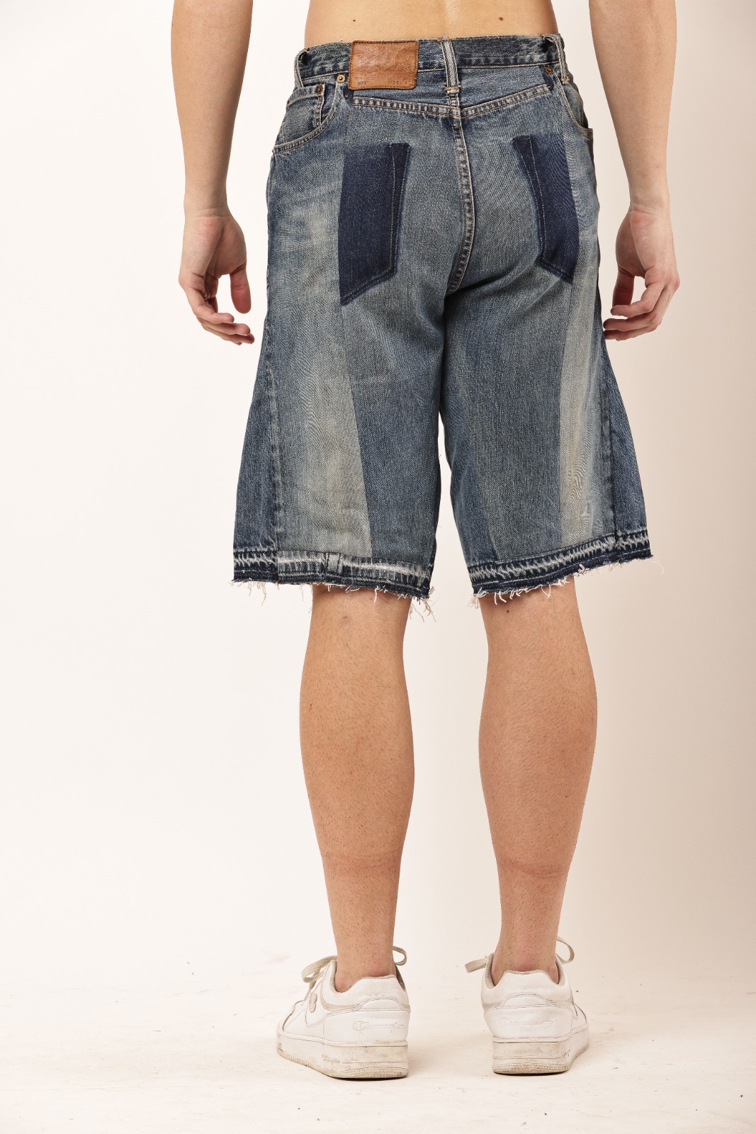 Crafted from durable vintage denim, these Reworked Utility Denim Jorts bring a rugged workwear aesthetic with a modern streetwear twist. Featuring reinforced double-knee panels, oversized utility pockets, raw hems, and hand-finished details, each pair carries a unique character that sets it apart.