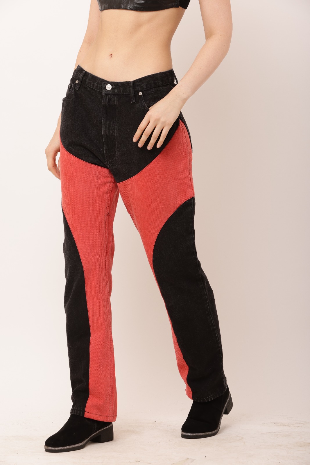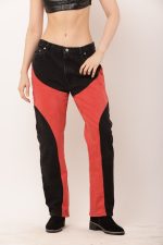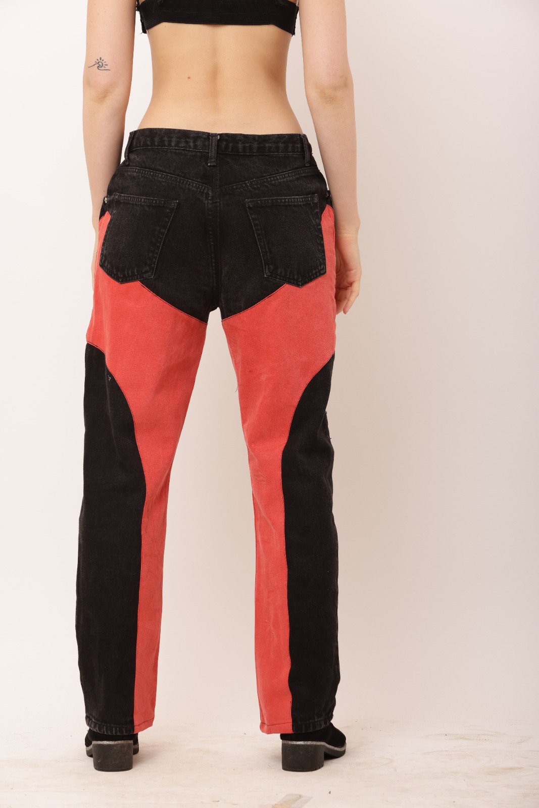 This pant is crafted from a combination of upcycled orange and black tonal old pants, creating a striking color-blocked effect. The straight fit offers a timeless, flattering silhouette that pairs effortlessly with any style. The bold mix of colors adds an unexpected yet stylish contrast, while the durable fabric ensures both comfort and long-lasting wear.