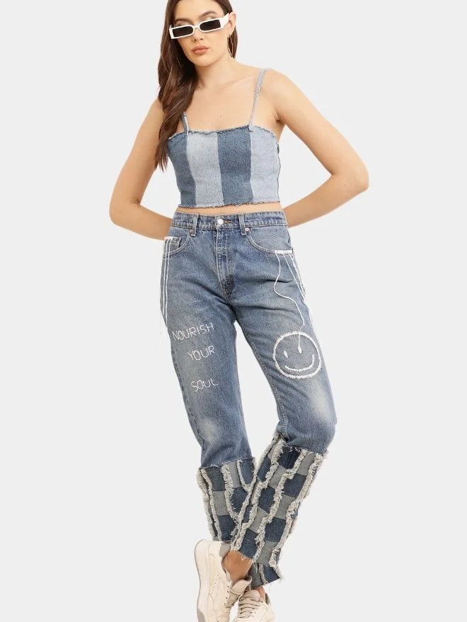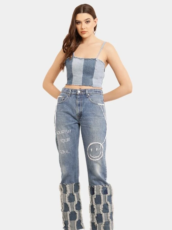 Due to the handcrafted nature of the garment, minor variations in denim shade and texture may occur, making each piece unique.