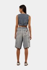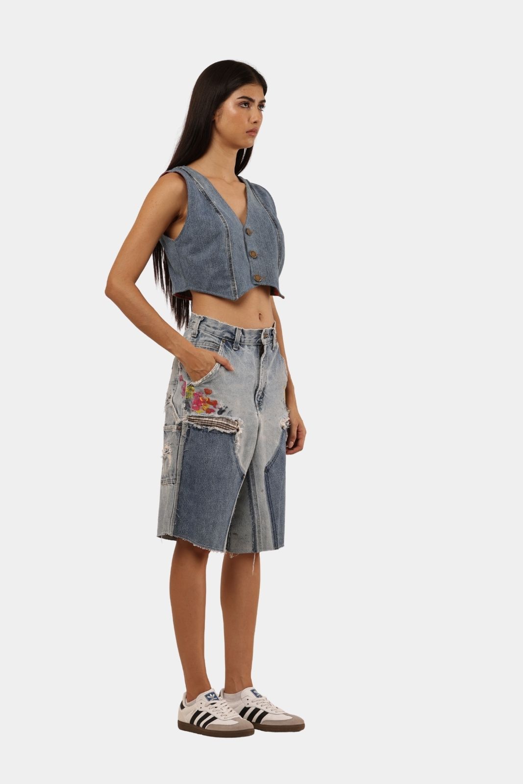 These unique jorts are handcrafted from original Carhartt blanket-lined work pants, carefully transformed into a bold, upcycled streetwear essential. The design highlights panel-cut denim construction with exposed seams and raw hems, giving the shorts a rugged, deconstructed look.