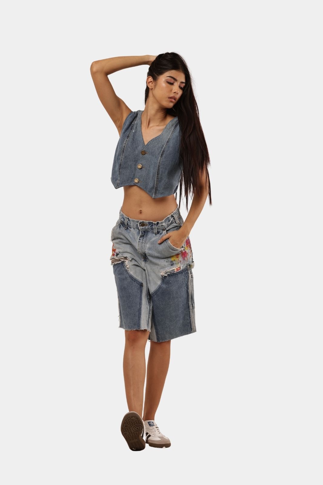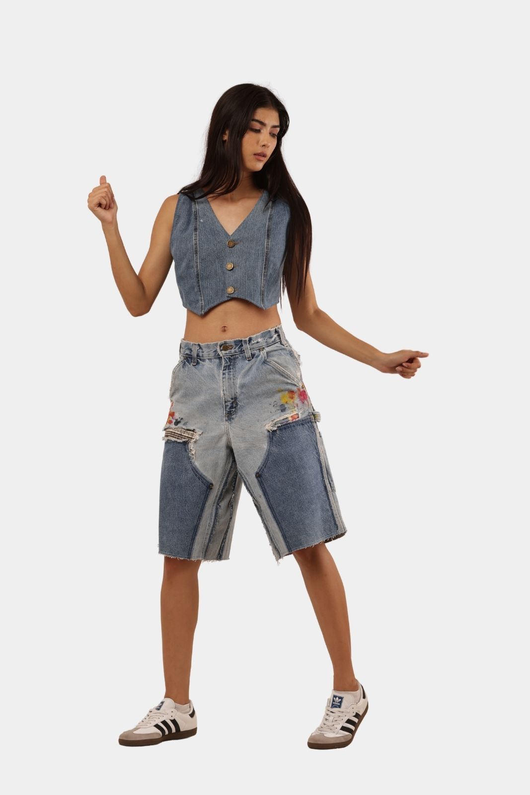 Upcycled Carhartt Blanket-Lined Painted Denim Jorts | Custom Workwear Shorts