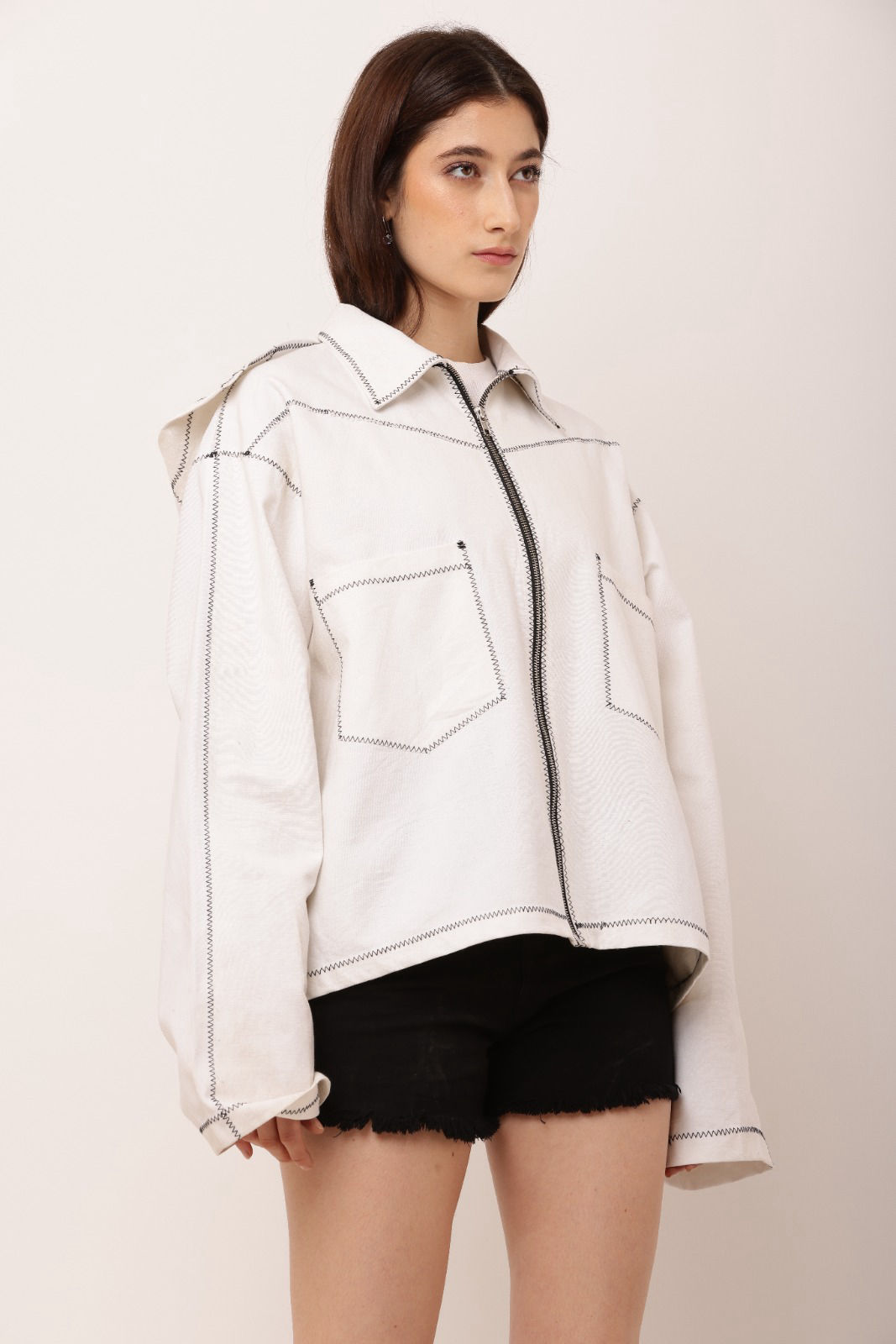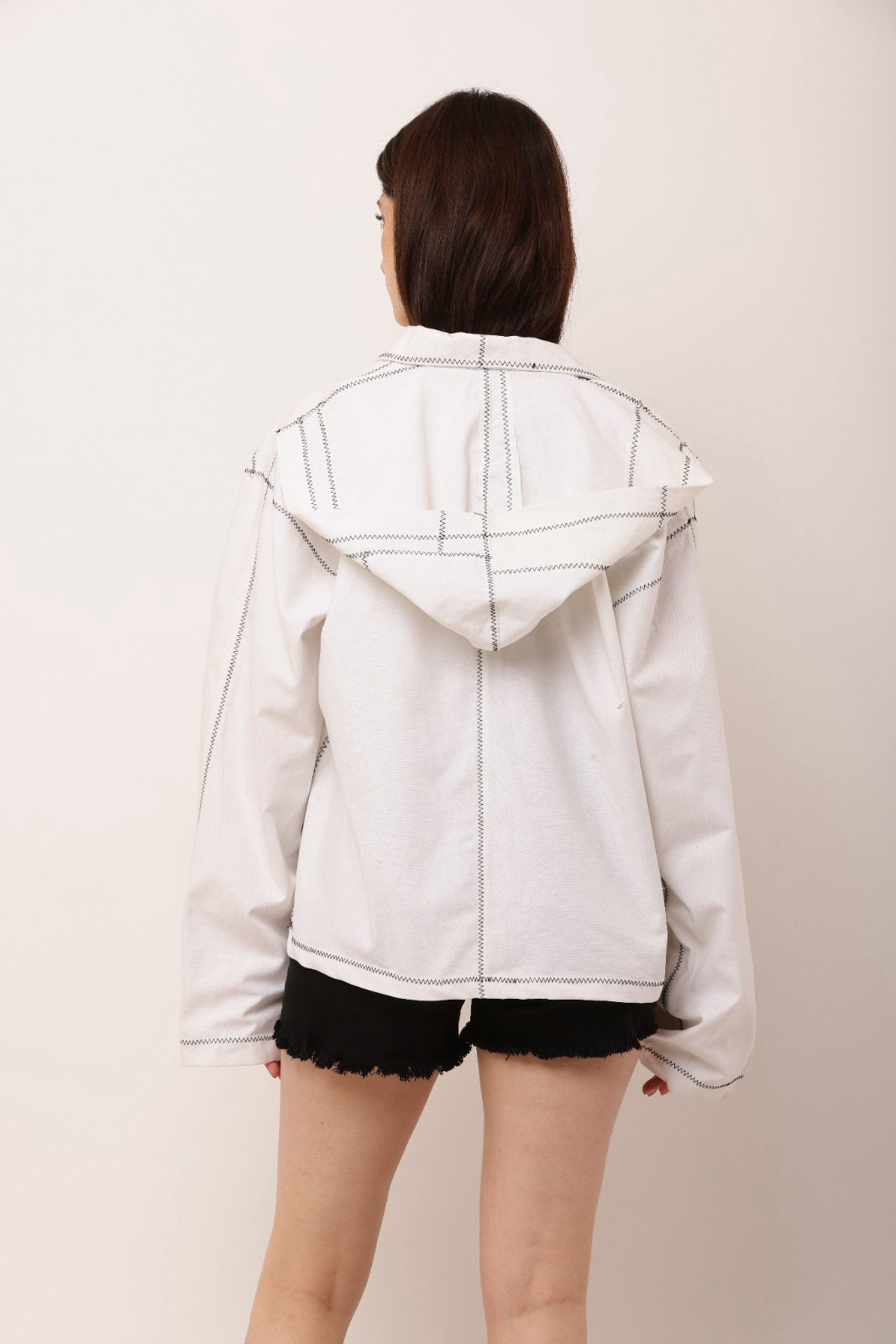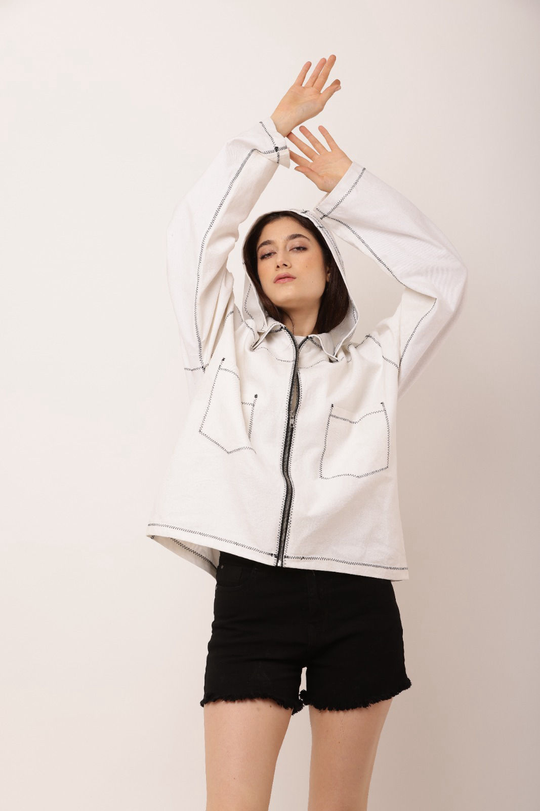 Crafted from cotton Dickies pant, combines style and functionality. The material is soft yet robust, offering both comfort and long-lasting wear. The shirt features intricate zig-zag stitching, carefully applied along the seams for a unique, textured finish. This distinctive stitch not only enhances the shirt’s aesthetic but also strengthens the construction, providing added durability. The combination of high-quality cotton, functional hood, and the eye-catching zig-zag stitching creates a trendy and versatile piece that’s both practical and stylish.